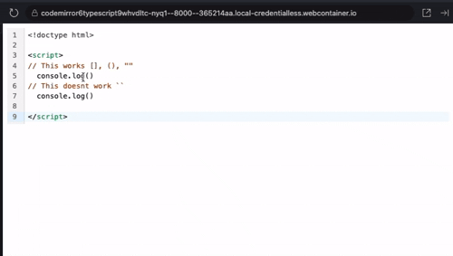 I’m not seeing anything unexpected happen when I type a backtick before the parentheses in the demo you linked. What browser are you using? Are there any extensions enabled that might be interfering with the editor?